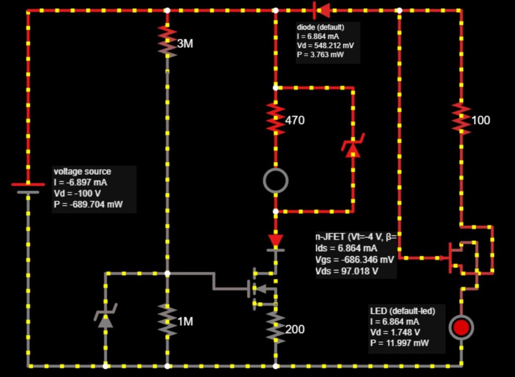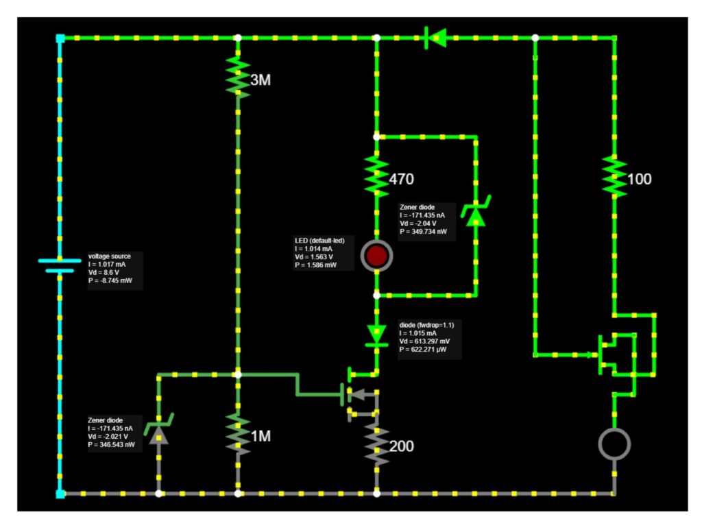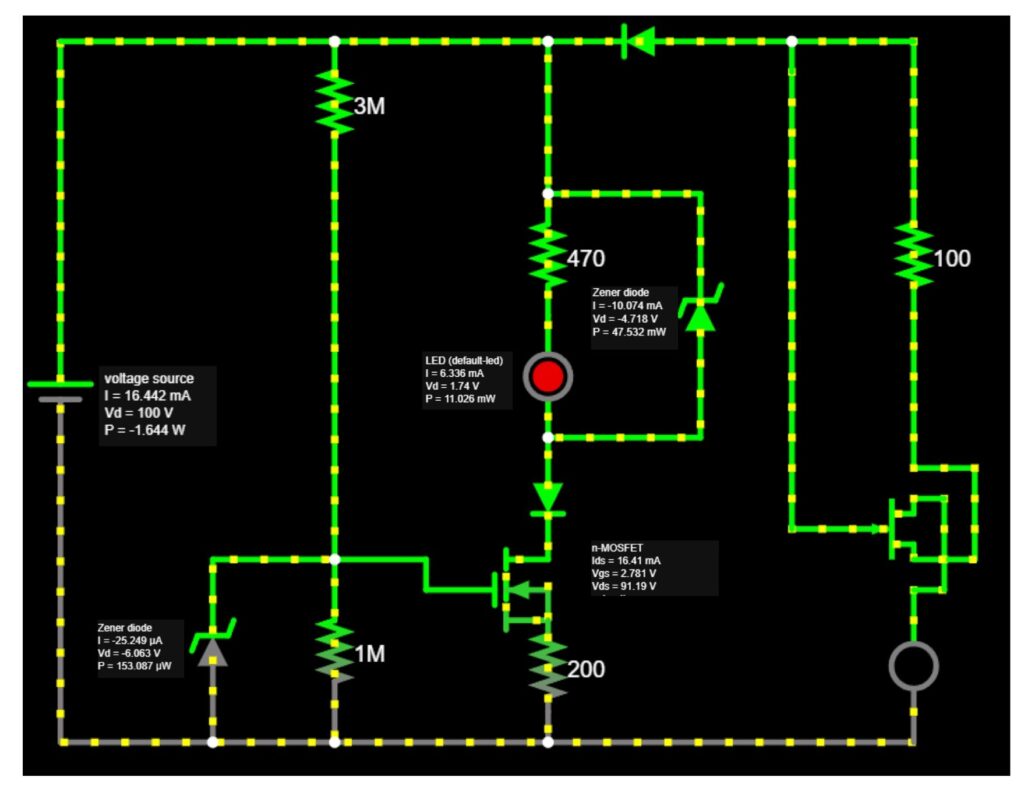 - The circuit uses only simple components which are very cheap such as diodes, zener diodes, LEDs, and resistors.